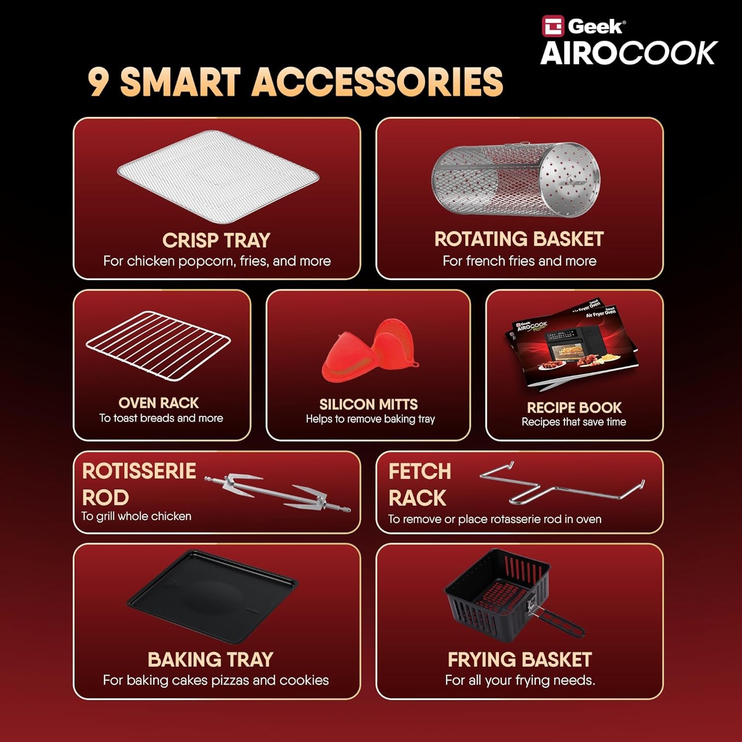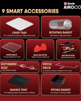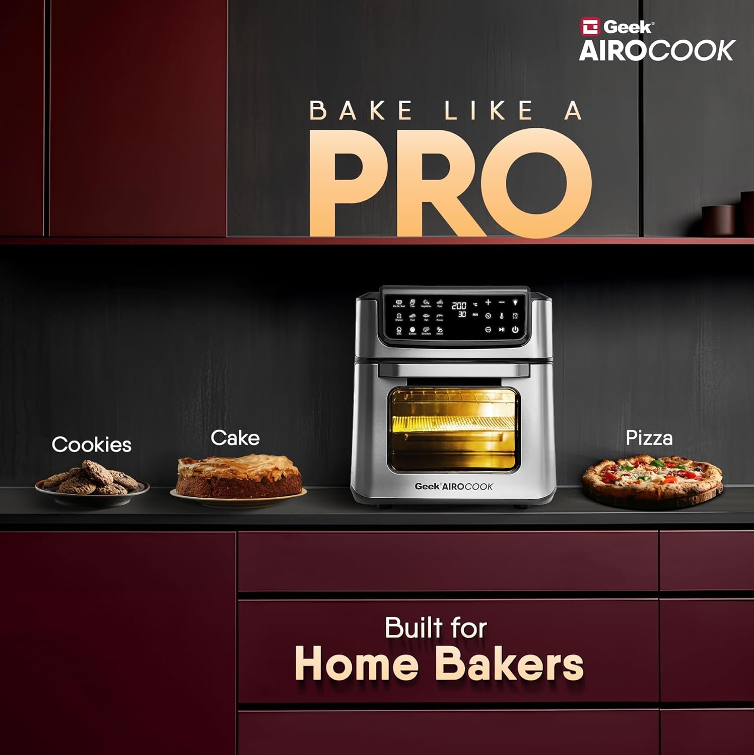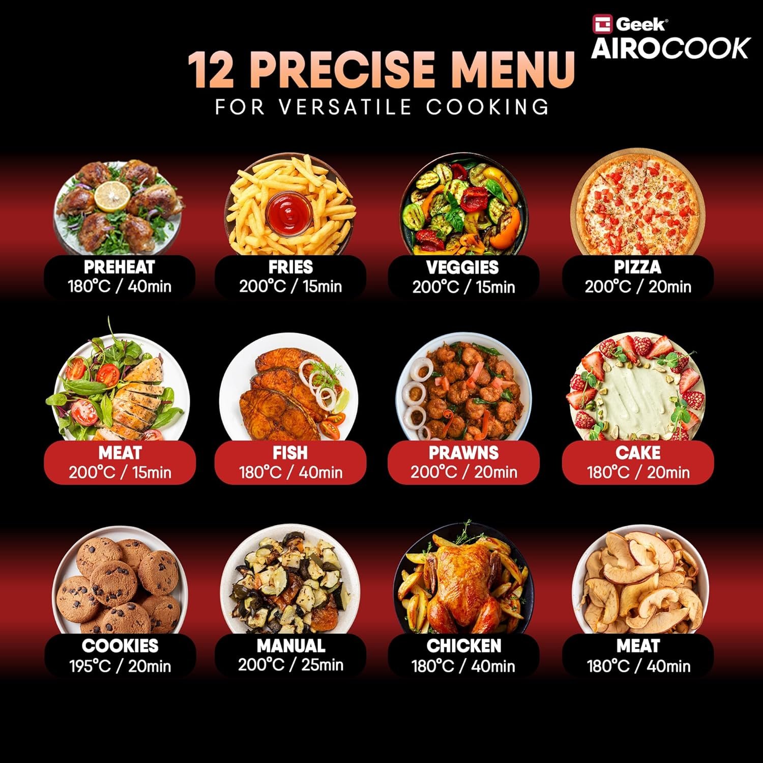8-in-1 Appliances: Introducing the Geek Airocook Helix 12L Capacity and 1700W Power versatile digital air fryer oven for home that effortlessly takes on the roles of Air Fryer, Griller, Convection Oven, Pizza Maker, Toaster, Broiler, Dehydrator & Fried Food Warmer