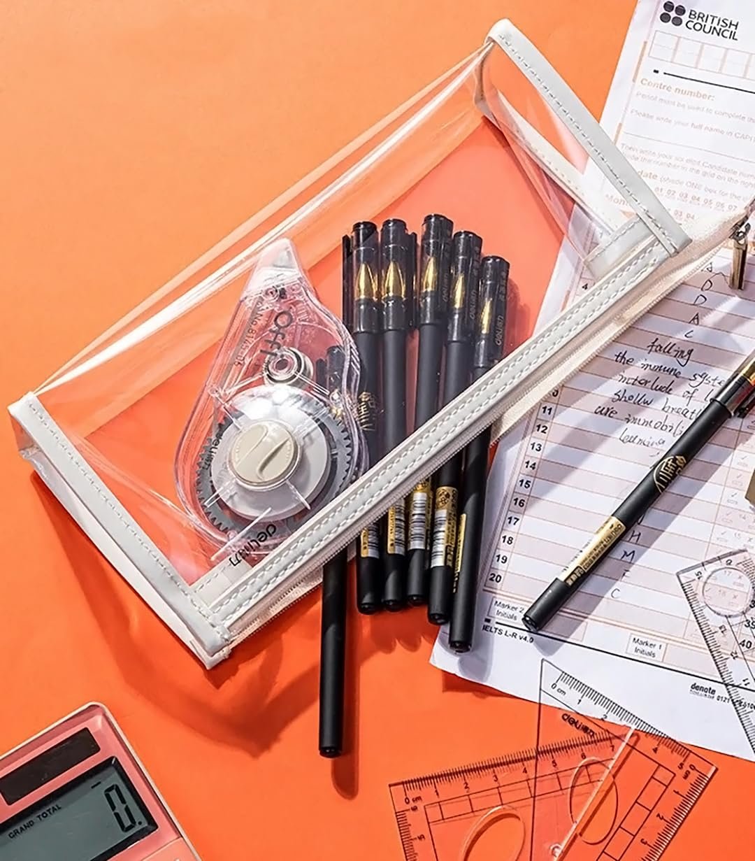 Creative triangular design, practical and beautiful, which can ensure that the clear pencil cases are placed steadily on the desktop.