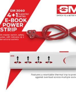 Ergonomically designed, this GM 3060 E-book 4+1 spike guard sports a power strip that features sockets, a master switch and an indicator. Multitasking is not a new concept in today’s world. The rising demands of the tech-savvy population require devices such as this socket spike guard that helps them stay connected, safely. It also acts as an extension cord, letting you connect and protect four appliances.