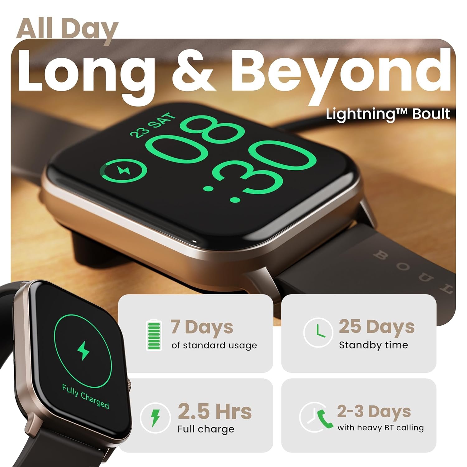 ✅Long Battery Life: Get up to 2-3 days of battery life with heavy Bluetooth calling use, and up to 7 days in regular mode. Standby mode lasts an impressive 25 days, with a quick charge time of 2.5 hours, ensuring your smartwatch is ready when you are.