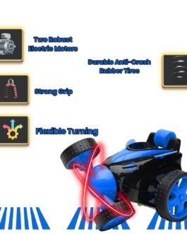 Gooyo DB2060 Rechargeable 360° Rotating & Rolling Small Stunt Car Toy with USB Cable & Remote Controller | Blue Color, Power Source: Lithium Battery in Car (Included)