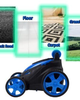 RC STUNT CAR: This cool racing car can do all sorts of tricks. It can go forward, backward, left and right easily. It can even drive on its sides and spin around in a full circle (360°). When it’s moving fast, it can spin like a tornado and dance around. It can also walk upright at a 90-degree angle and do cool wheel spins and rolls in the front.