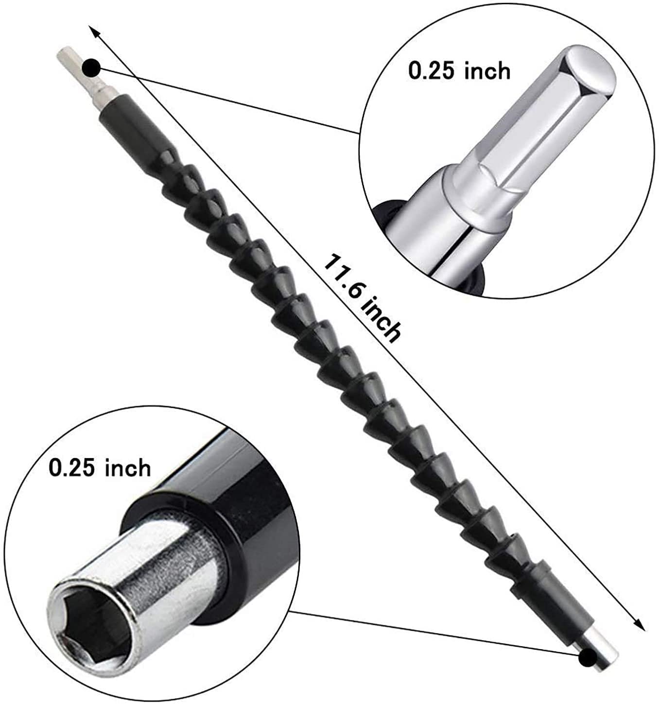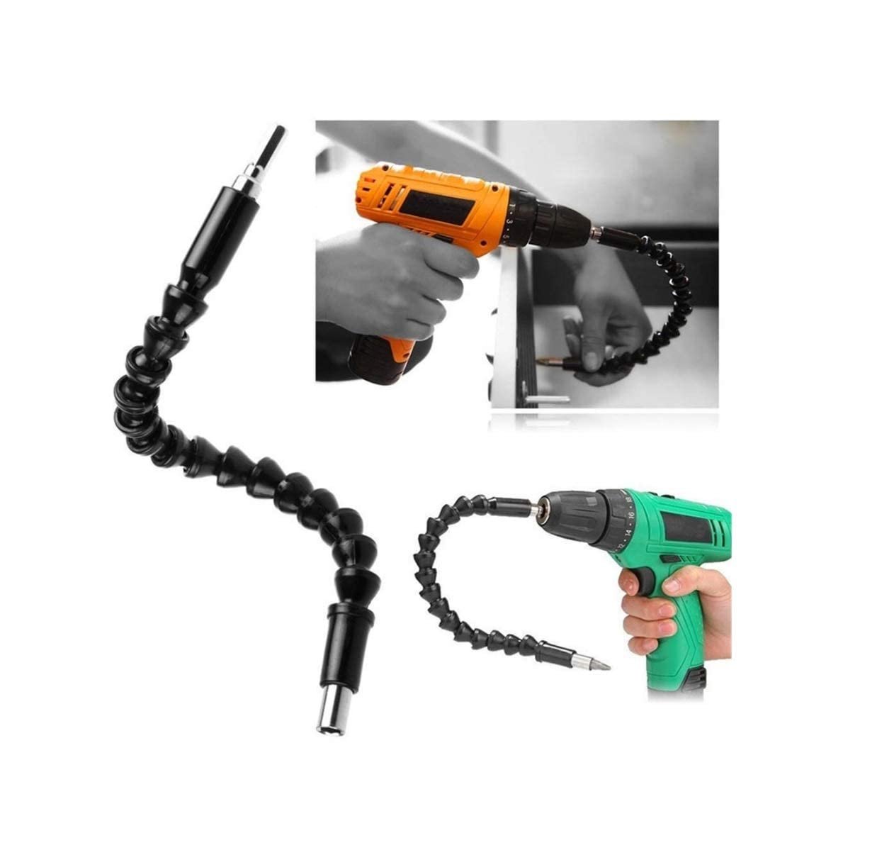 H9 ¼ flexible bit extension kit is power hand repair DIY tool accessories for drilling machine. Flexible drill shaft can be either used for general cartridge-type hand drill or electric screwdriver. The head of shaft can be mounted hexagonal shank screwdriver bits. Two ends: one end is outer hex, connects to drill; the other end is inner hex. The flexible shaft can be bent to access those hard to reach places, mainly suitable for those narrow dead space where screwdriver cannot work.