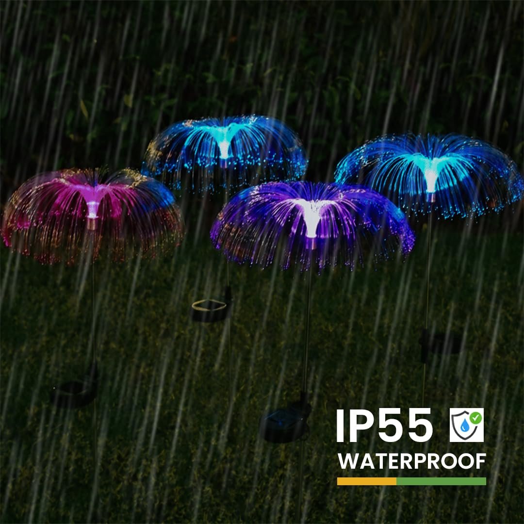 [COLORFUL EFFECT] Add a magical touch to your garden with the Hardoll Solar Decorative Jellyfish Light. Its unique fiber optic design produces a colorful LED display, mimicking the graceful movement of jellyfish. Waterproof and ideal for outdoor pathways and lawns.