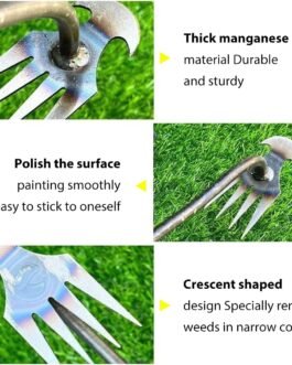 STURDY AND DURABLE MATERIAL: This weeder hand tool is crafted with sturdy metal, rust resistant, no deformation, ensuing the long service life . Hard metal claws can poke into various mud, ground, earth, etc, with any deformation or damage, reliable to use.