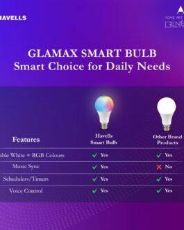 Voice Control & Music sync – Havells Smart LED Bulb is compatible with Amazon Alexa and Google Assistant, allowing you to control the bulb with your voice commands. A true hassle-free operation for you & your family members.