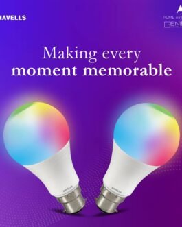 RGB Lights- Set the right tone with a 16M colour palette at your fingertips. From warm to cool colours, and dim to party colours, the Havells smart bulb efficiently enables you to create a space for your every mood, occasion & festival