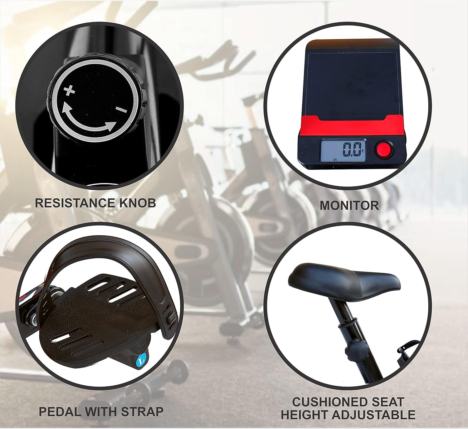 ERGONOMIC SEATING – The exercise fitness bike is ergonomically designed for seating with large adjustable seat cushion. Its handlebars are packed with high-density foam, which will prevent you from experiencing stiffness of the back, strains, and muscle aches as you work out.