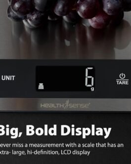Premium Stainless Steel Platform: Elevate your kitchen experience with the HealthSense Weight Machine for Kitchen featuring a durable stainless steel platform. Perfect for health-conscious individuals, fitness enthusiasts, home bakers, and chefs, Chef-Mate KS 50 ensures accurate weighing for precise cooking and baking results.