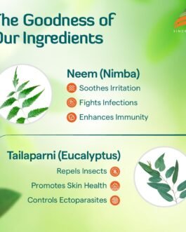 Natural Ingredients: Enriched with Neem (Nimba), known for its antifungal properties that alleviate itching, redness, and irritation, and Eucalyptus (Tailaparni), which possesses antiseptic and germicidal qualities to enhance the skin health.