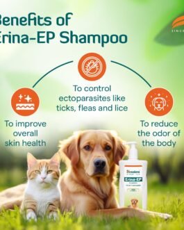 Himalaya Erina-EP Shampoo is a specially formulated solution designed to control external parasites and maintain your pet’s skin health.