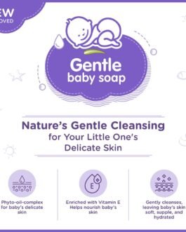 Himalaya Gentle Baby Soap is formulated to gently cleanse and condition your baby’s skin, leaving it soft and hydrated.The goodness of Olive Oil and Almond Oil is infused into the soap, making it ideal for daily use