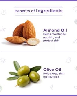 Key Ingrediants: Almond Oil is a renowned skin softener which moisturizes baby’s skin.