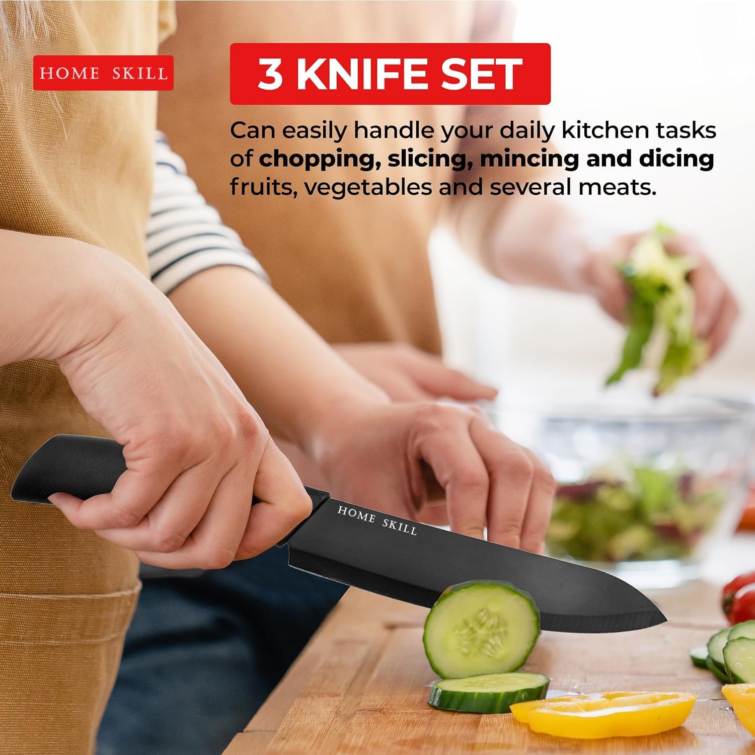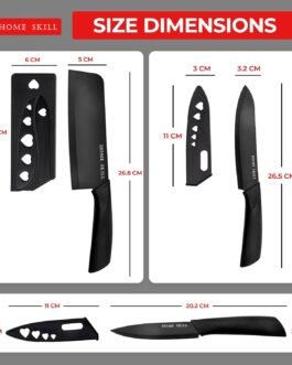 The HOME SKILL kitchen knife set is crafted from high-quality stainless steel, ensuring sharp, precise cuts and long-lasting durability, perfect for everyday kitchen tasks.