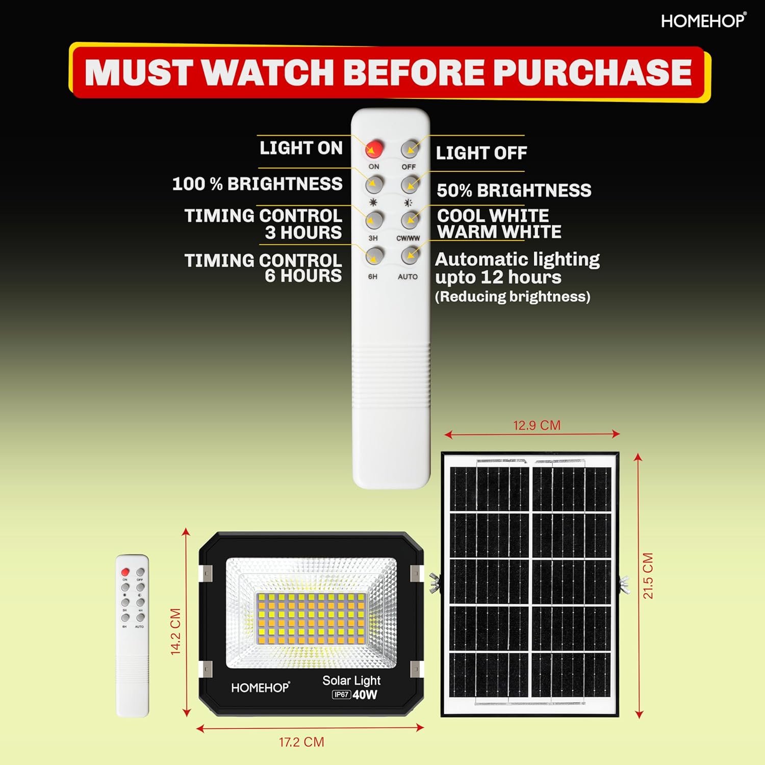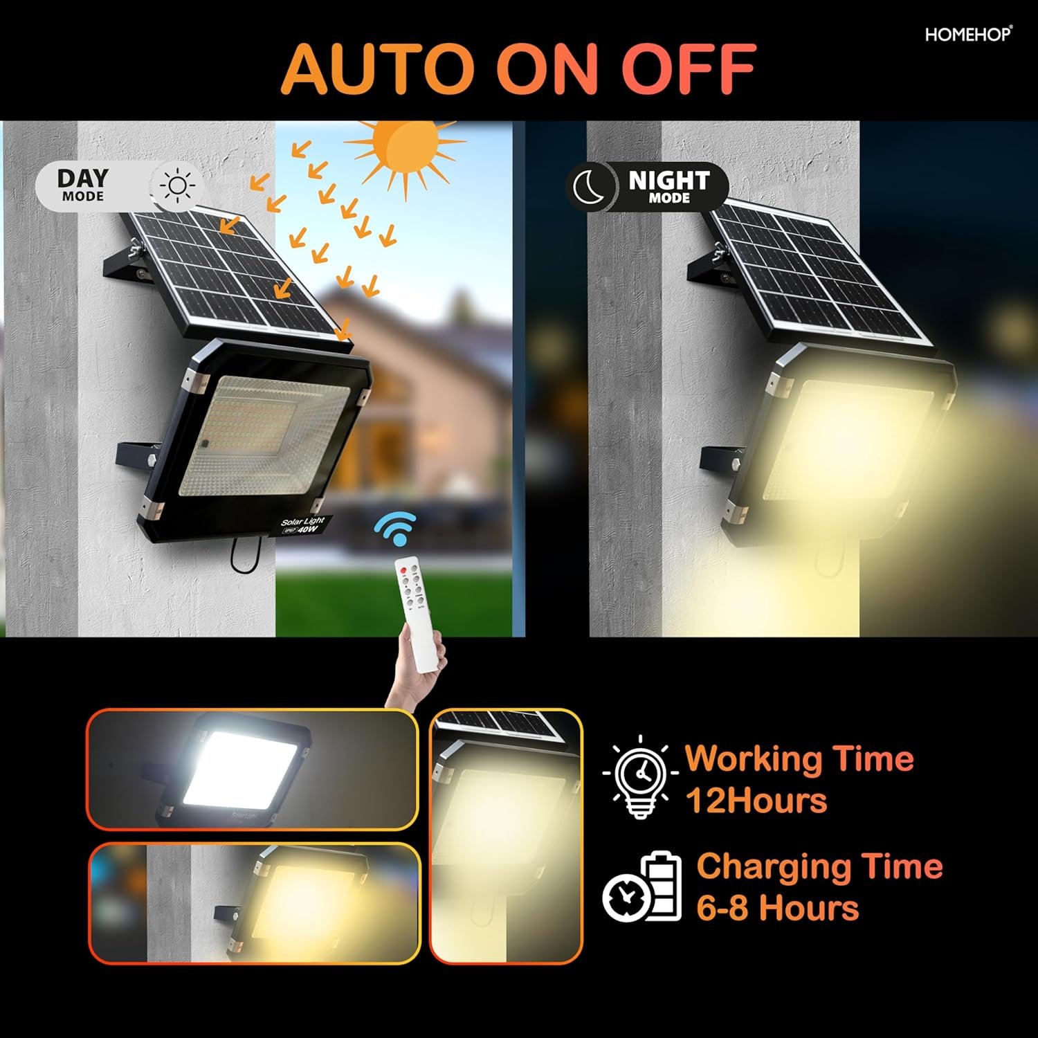 HOMEHOP 40 WATT SOLAR FLOOD LIGHT WATERPROOF LED WALL LAMP FOR HOME OUTDOOR, AUTOMATIC WIRELESS LIGHTING