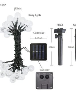Solar Panel: 2v/200ma PolycrystallineBattery: NI-MH 1.2v 800MAHCharging Time: 6-8 HoursWorking Hours: Upto 12 HoursWorking Mode : 8 ModesString Length : 6.5 MWaterproof: IP65Material: ABSLed’s: 30 LedColor: Warm Light