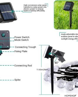 Homehop Solar Outdoor Led Crystal Ball String Light For Home Garden Balcony Terrace Wall Rechargeable Waterproof Decorative Lamp 800Mah Ni-Mh Battery(6.5M, 30 Leds) – 6.5 Meters