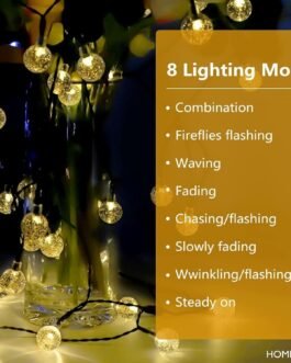 【8 LIGHTING MODES FAIRY LIGHTS WITH Memory Function】:These solar light outdoor garden fairy lights feature 8 modes ,making them ideal for solar light outdoor home, balcony decoration items, and garden decoration items outdoor. Ideal as diwali lights for decoration for home, hanging lights for balcony, and diwali decoration items for home decor, they create a festive glow. Use them for diwali decoration, diwali lights for balcony, or as solar diwali light outdoor for charm.