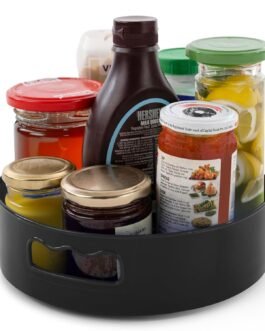 360° Rotating for Easy Access: This turntable organizer allows smooth, full-circle rotation, giving you quick and effortless access to all your stored items, whether it’s spices in the kitchen or firdge or cosmetics in the bathroom.