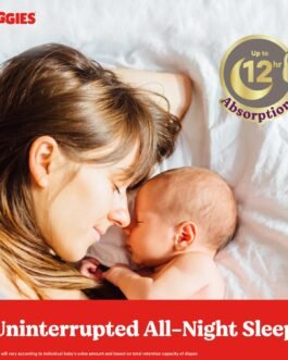 Stay worry free with Huggies equipped with triple leak guard to help prevent Thigh Leakage. Enjoy a peaceful night’s sleep with up to 12 Hrs overnight absorption