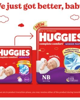 Introducing the New and Improved Huggies Complete Comfort Wonder Pants – India’s Fastest Absorbing Diaper is Clinically Proven to Prevent Diaper Rash. Designed to provide maximum comfort and absorbency for your little one, these are our best ever diaper pants. Our patented X-channels absorb urine faster than other diapers, reducing skin exposure to urine & keeps your baby dry & rash free. But that’s not all! Introducing our New Inner Cushion Soft Waistband is softer than your regular diaper. Our diaper pants also feature India’s 1st Bubble Bed technology that provides a soft inner bubble layer to wrap your baby in ultimate softness. Made from air-friendly breathable material, these pants help your baby’s skin breathe, keeping them comfortable throughout the day, protecting them from rashes. And with up to 12 hours of overnight absorption, you can both have a peaceful night’s sleep. We understand how important it is to keep your baby dry at all times, which is why our diaper pants come with triple leak guard protection. This extra padding helps prevent thigh leakage ensuring there are no messes to deal with. Choose from a range of sizes of our Pant Style Diapers – including diapers New born /XS size , diapers S size (small), diapers M size (medium), diapers L size (large), diapers XL size (extra large), diapers XXL size (double extra large) and diapers XXXL size (triple extra large) – making it suitable for babies of all ages and sizes. Trust Huggies Complete Comfort Wonder Pants for complete care and protection for your little one. Add the new and improved Huggies Complete Comfort Wonder Pants to your shopping cart today! Available on Amazon.