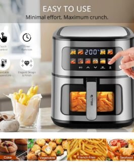 Large family, larger portions, perfect fit – our 8L air fryer has ample space to cook generous amounts of food, making it ideal for families or gatherings, ensuring everyone gets a delicious meal.