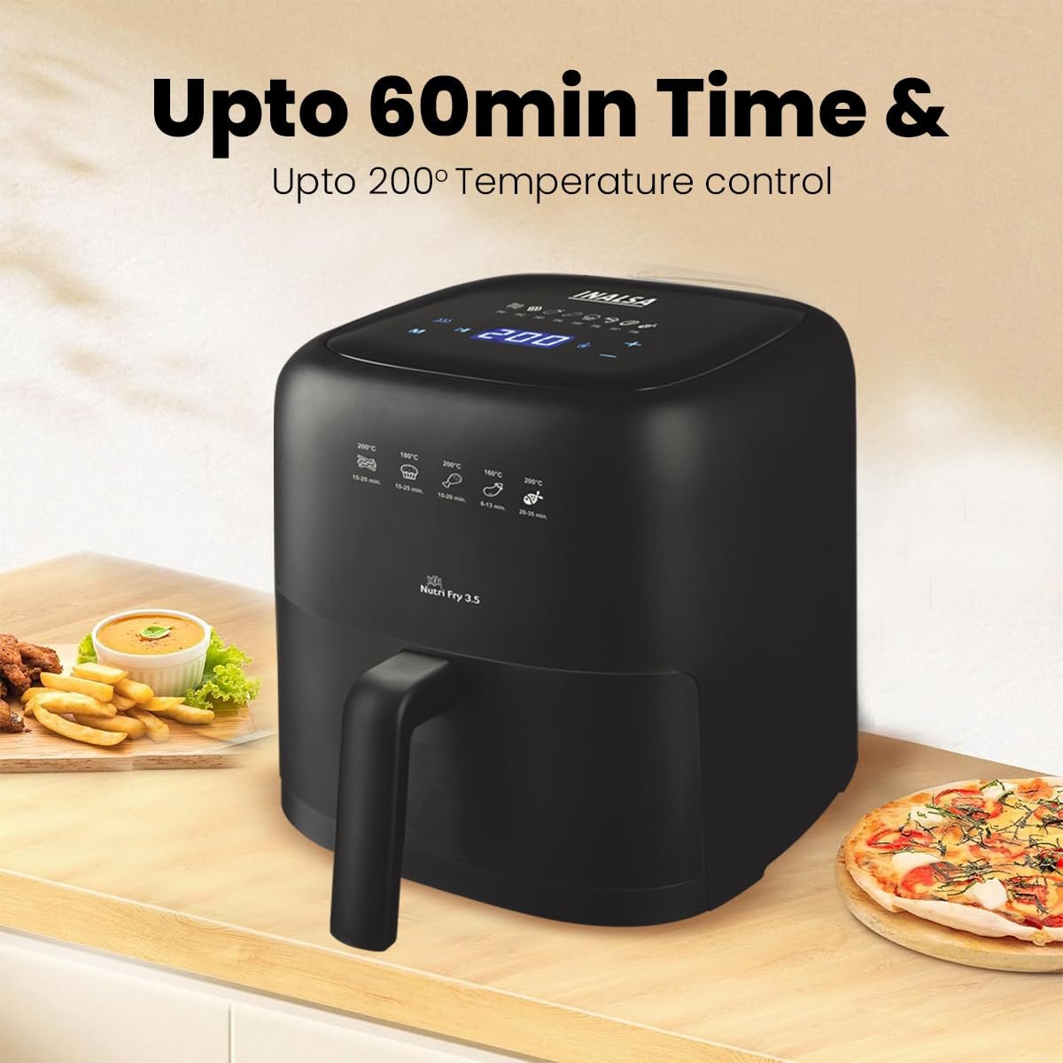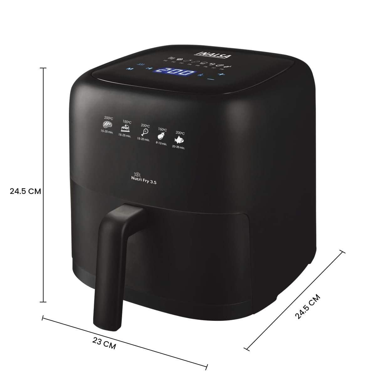 Fully digital: Fryer with digital touch screen and very easy to use. Set time between 1 and 60 minutes and the temperature between 80ºC and 200ºC. It has a buzzer at the end of cooking, cold touch handle and non-slip feet