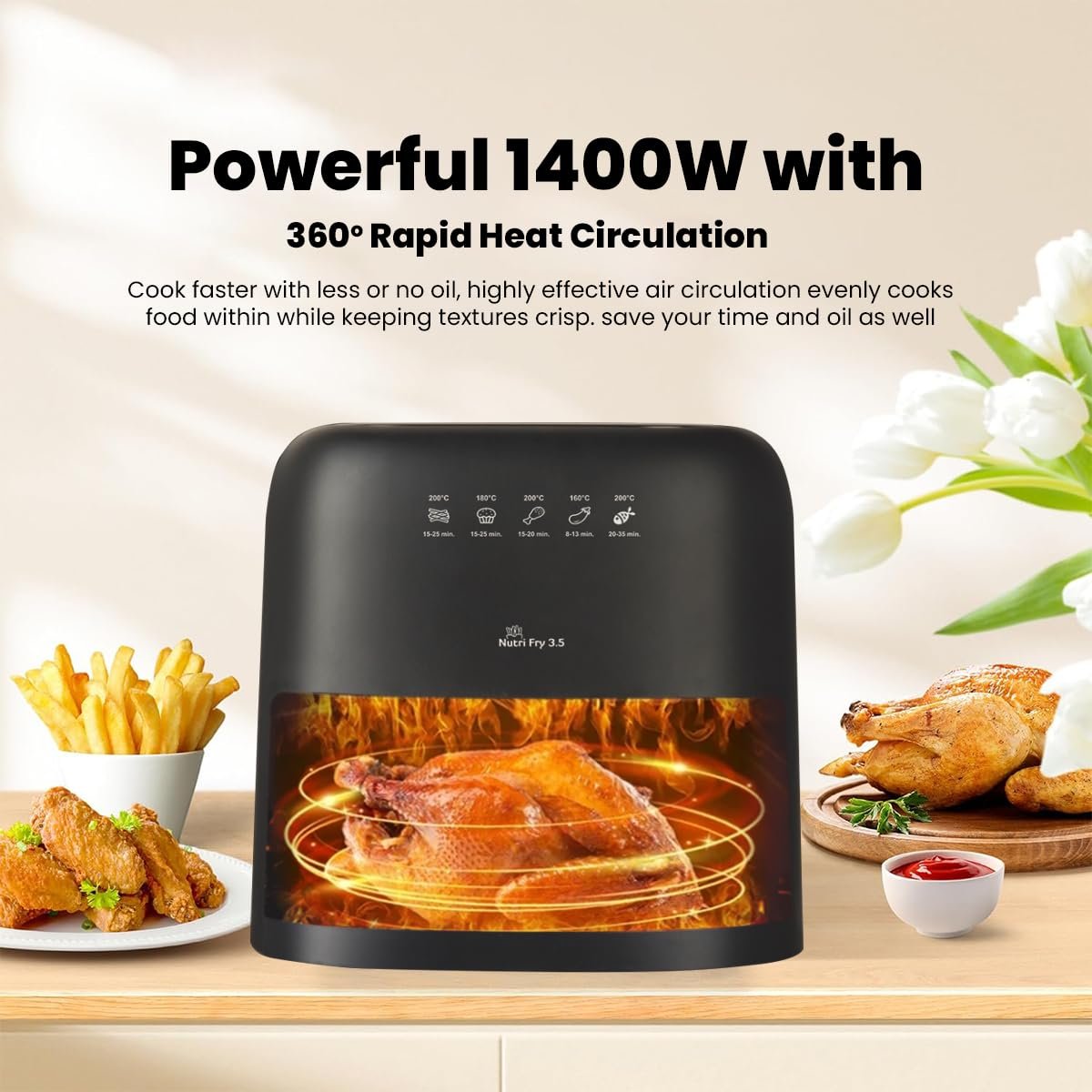 High capacity: 3.5 liters of capacity. It has 1400W of power that ensures fast and homogeneous cooking.