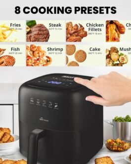 Oil-free fryer: Fryer with Air Crisp Technology that with hot air at high speed and constant temperature fries with little or no oil and achieves much healthier frying, with less than 99% fat and a crispy and tasty result