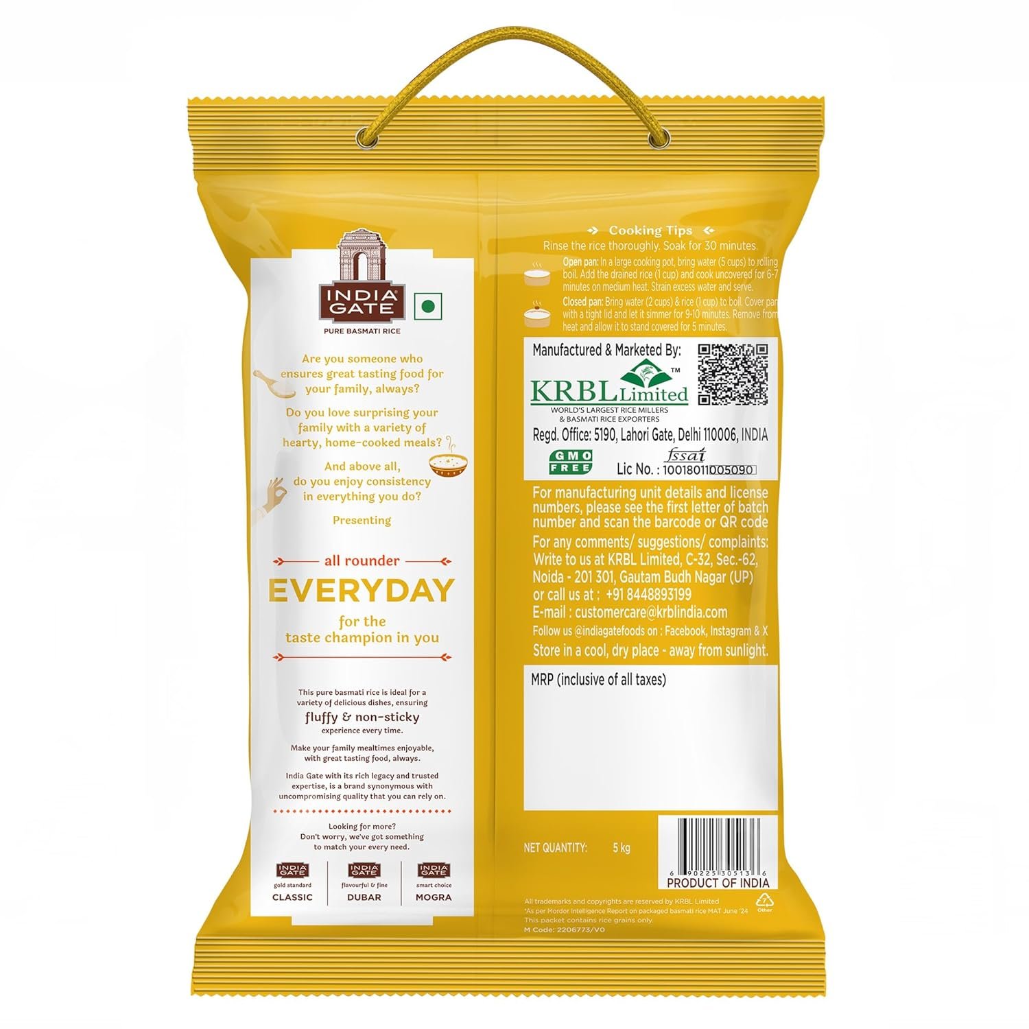 India Gate Basmati Rice Everyday originates from the heart of the basmati-growing land of India – the North-Western Himalayan region. The highest quality harvest of the region is tested, procured, and then sent for aging in the most conducive environment of the company-owned storage facilities. India Gate Basmati Rice Everyday has a burst of flavor to savor your taste buds combined with a aroma that’s so delicate that makes your regular dishes irresistible.