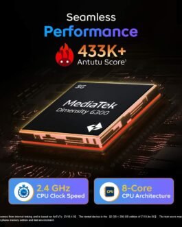 Dimensity 6300 5G Processor with 433K+* AnTuTu Score – A highly power efficient 6nm chip with CPU speeds upgraded to reach 2.4 GHz delivering a lag-free everyday experience with low power consumption.