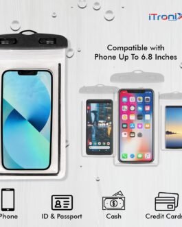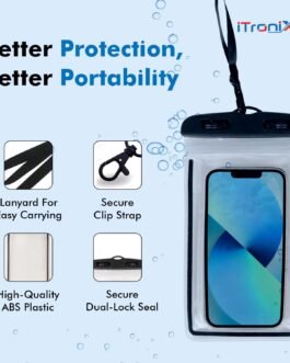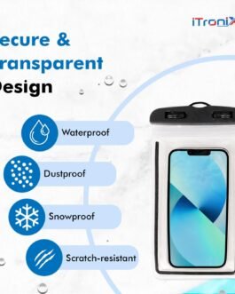 iTronix Waterproof Mobile Pouch Cover for All Mobiles, Cellphone Dry Bag Compatible for iPhone, Samsung, Mi, Redmi, Oppo, VIVO, All Other Smartphones up to 6.5 inches (Black)