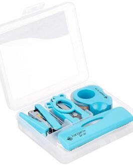 Package Includes : Kangaro DE- Mini 10, 1 Stapler Mini-10, 1 Paper Punch DP-22, 1 Scissors FL-1243, 1 Tape Dispenser TD-110, 1 Staples No.10-1M 1000 Pins ; Meterial : Alloy Steel & Plastic Body ; Style : Classic ; Color May Vary As Per Availability.