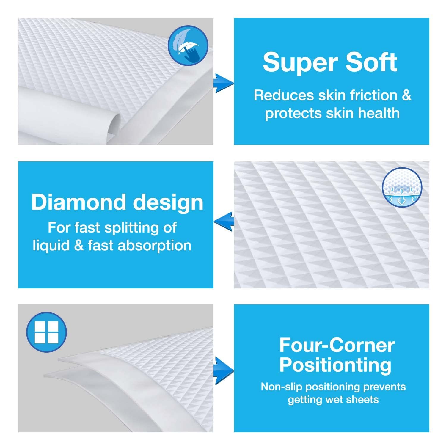 Waterproof moisture barrier helps in keeping beds and other surfaces dry. Contains SAP super absorbent padding which offers consistent absorbency for better comfort. Inside liner is soft and vented which is non-irritant to the skin. Top sheet is made of quilted material which is gentle on delicate skin.