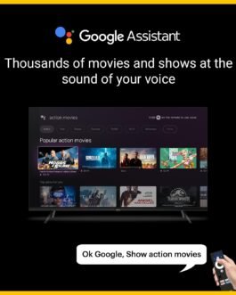 Thanks to its built-in Google Assistant, which can be used to control this TV with a few easy voice queries, a button on the remote can be used to turn it on. To find answers to your queries, search for and stream content, or load multiplayer games, simply say “Okay Google.”