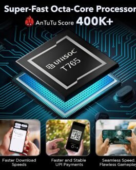Powerful UNISOC T765 Octa-Core Processor with an impressive 380,000+ AnTuTu score, delivering effortless multitasking and reliable performance.
