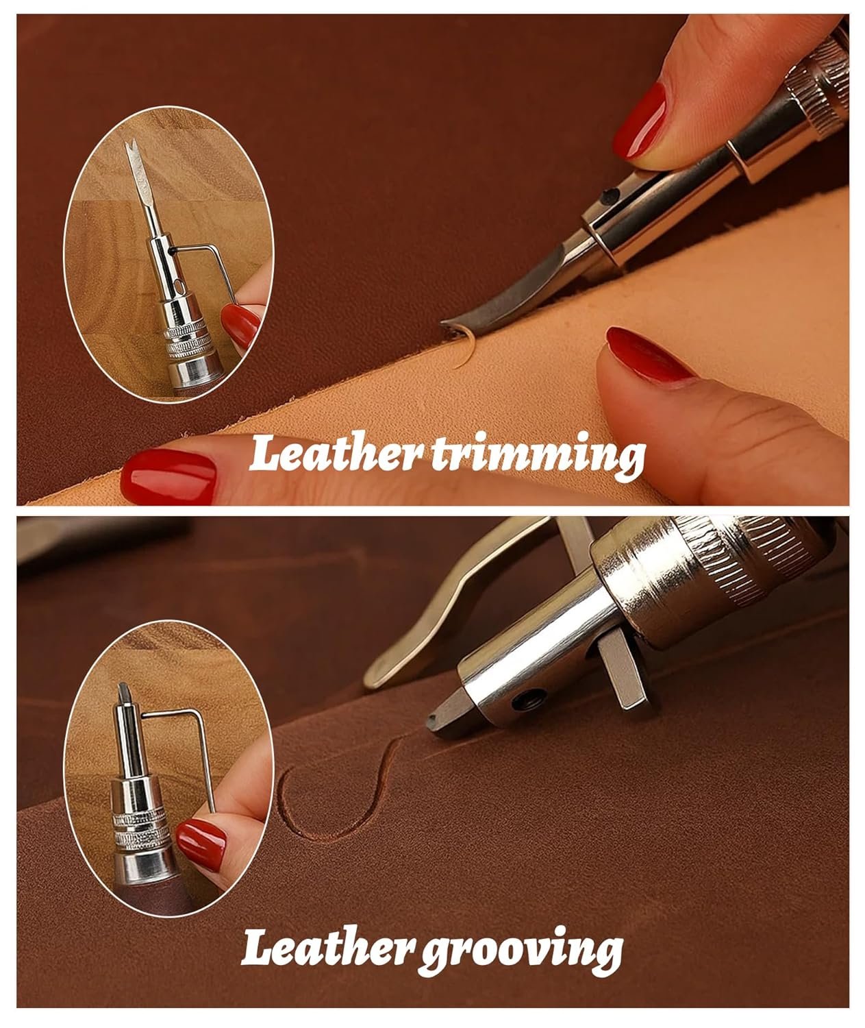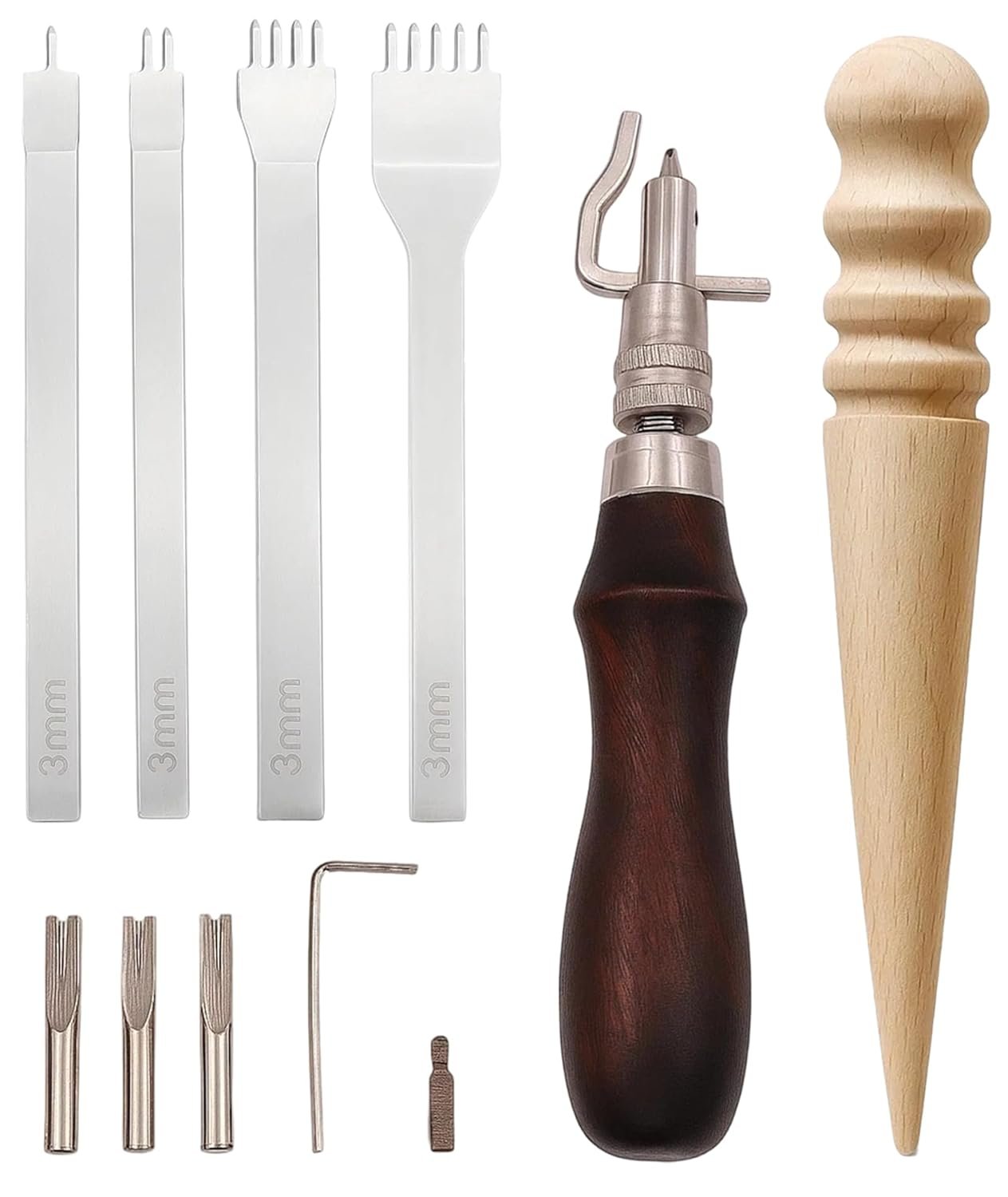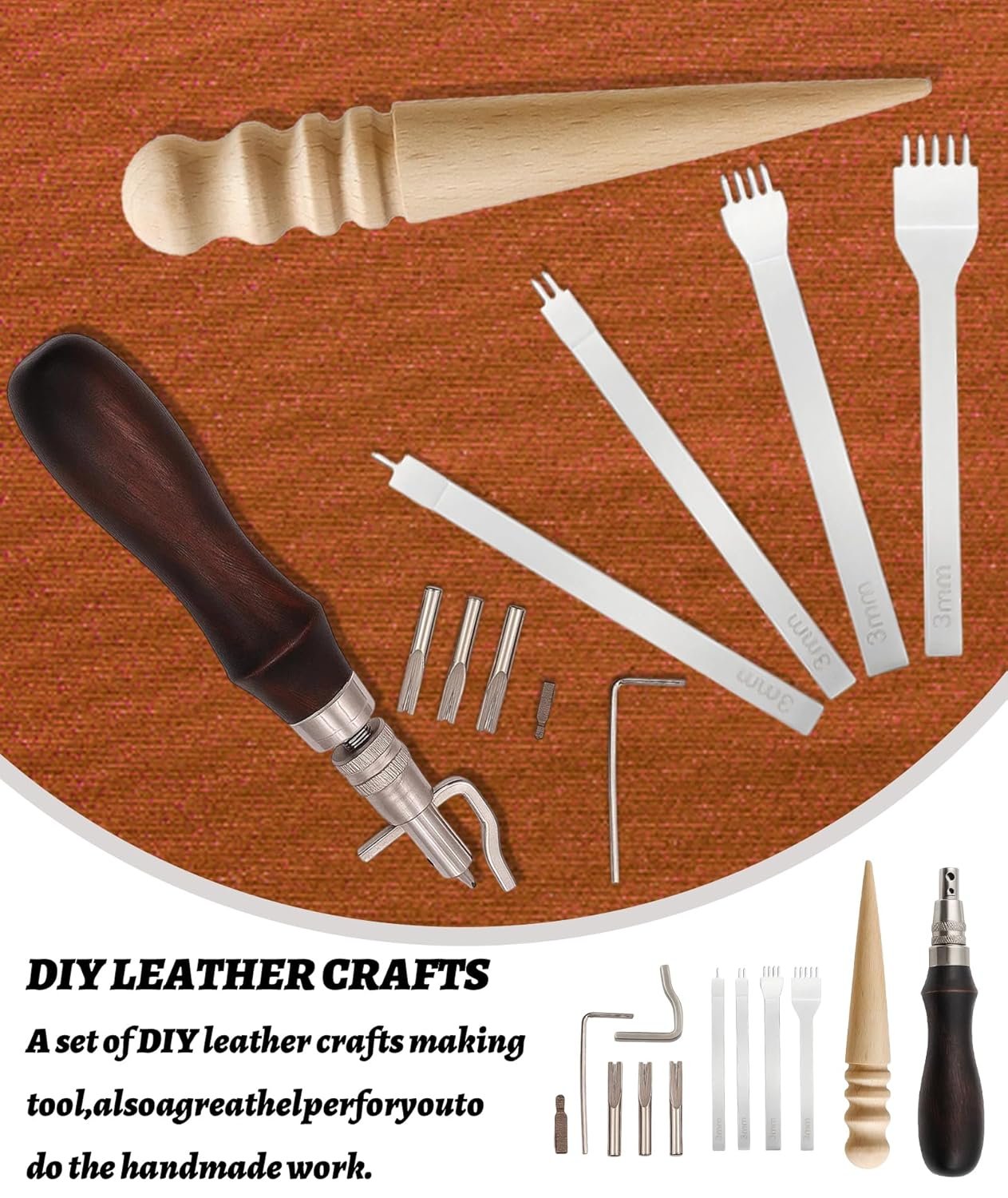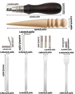 Versatile Punching Sizes:Leather Tools, Features assorted punch needles for different stitching needs, ensuring clean, even holes for smooth hand-sewing on various leather thicknesses.