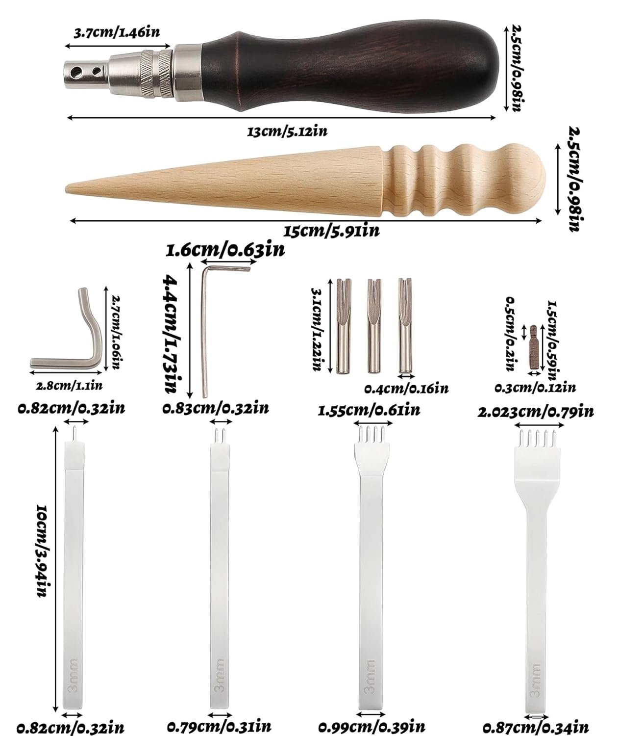Leather Tools, Leather Punch Hole Tooln, Leather Hole Punch Tool, Complete Sewing Craft Tool Set For Leatherworking, DIY Pouch Making & Hand Stitching (Assorted Sizes)