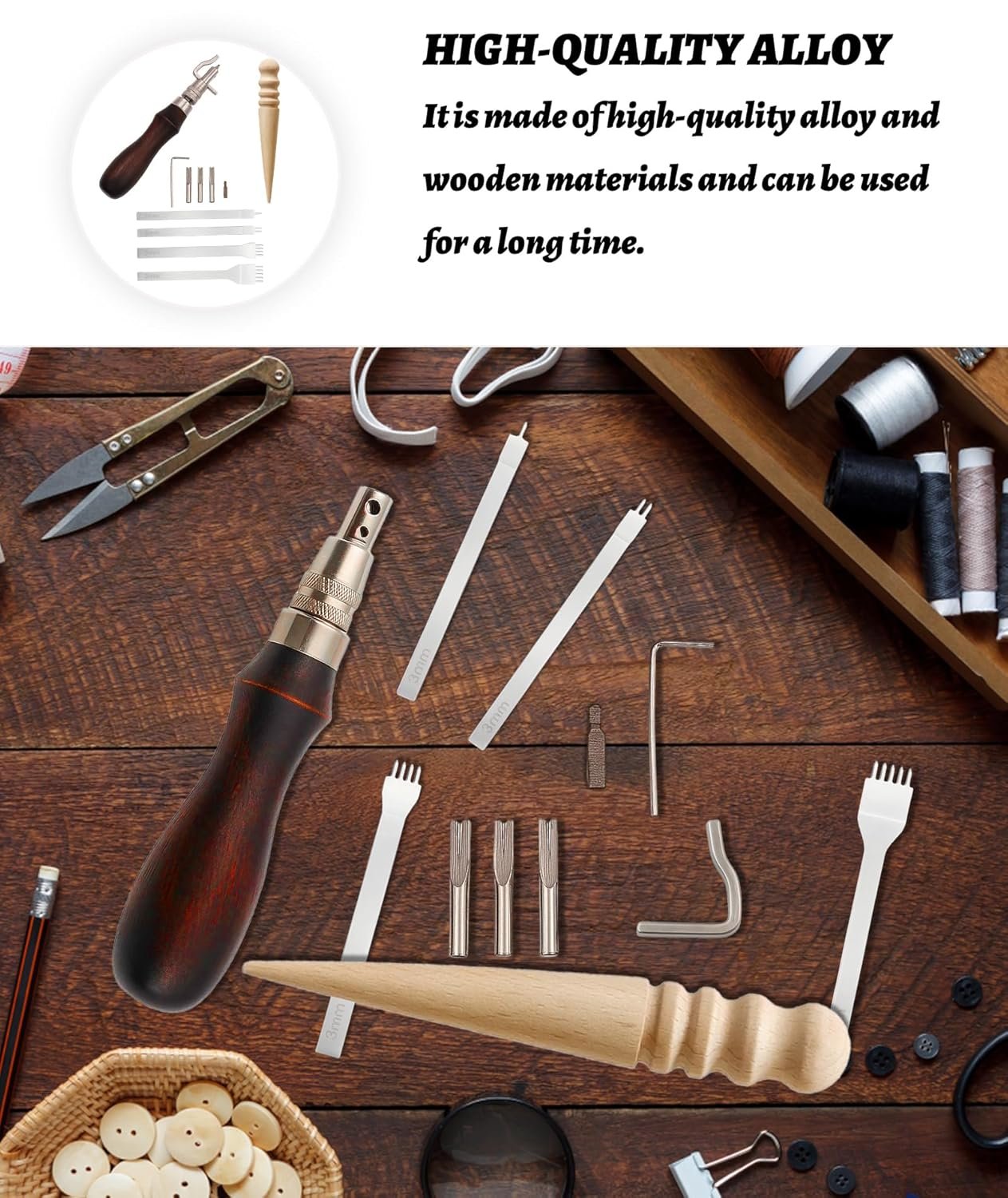 Premium Multi-Material Build:Leather Tools, Made with durable leather, sturdy metal punches, and high quality materials for long-lasting, performance in all your stitching projects.