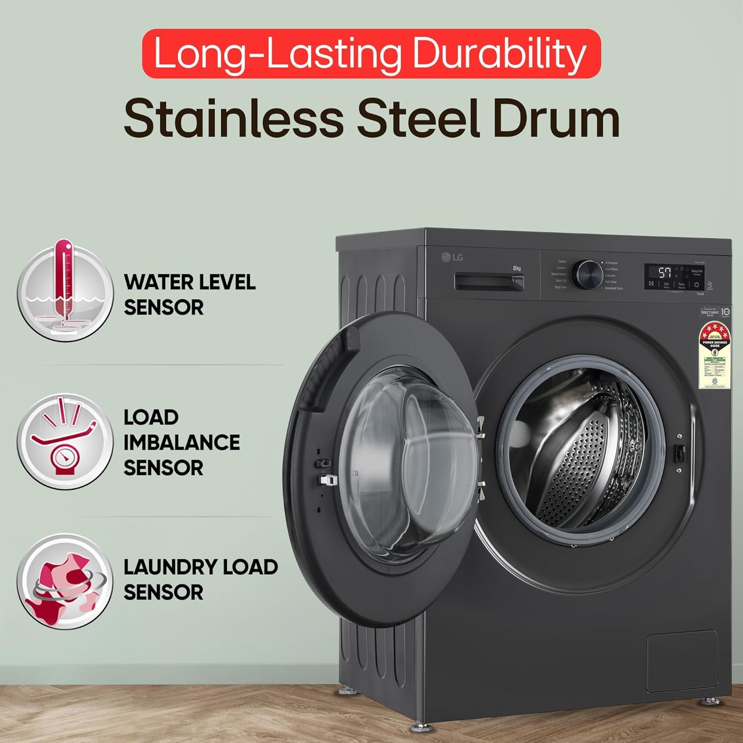 The LG FHB1208Z4M is highly energy-efficient, equipped with Inverter Direct Drive technology, which reduces power consumption. It also has a 5-star energy rating, ensuring lower electricity bills while still delivering excellent performance.