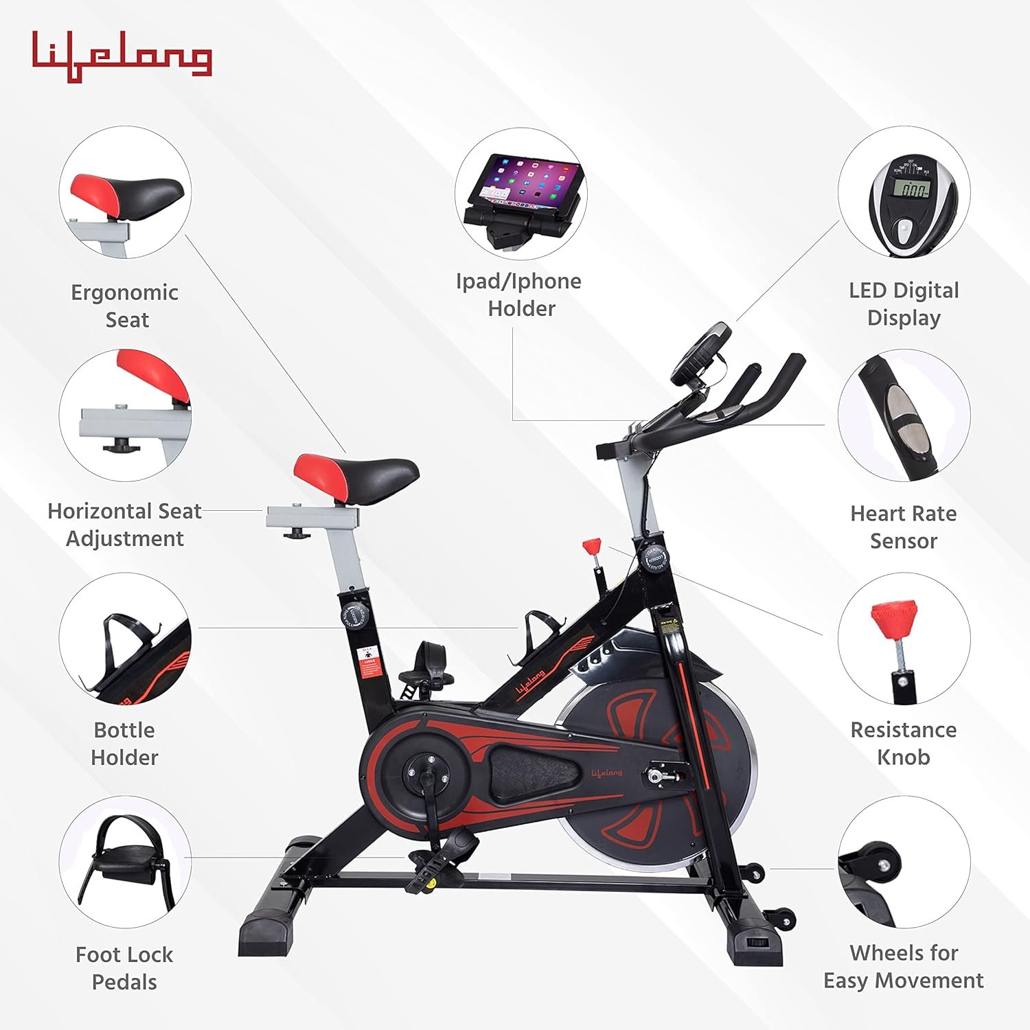 Your fitness partner: Lifelong Fit Pro Spin Bike can be used to stimulate circulation, improve your muscle strength and enhance coordination between your arms and legs. It is Ideal for your daily fitness. Combine your favourite activities with your workout routine. Place your bike in your room and enjoy your favourite movies or Netflix series while getting fitter. This bikes’ quiet and smooth pedal operation allows the bike to be used at home, it is easy to use and is a perfect addition to your home.
