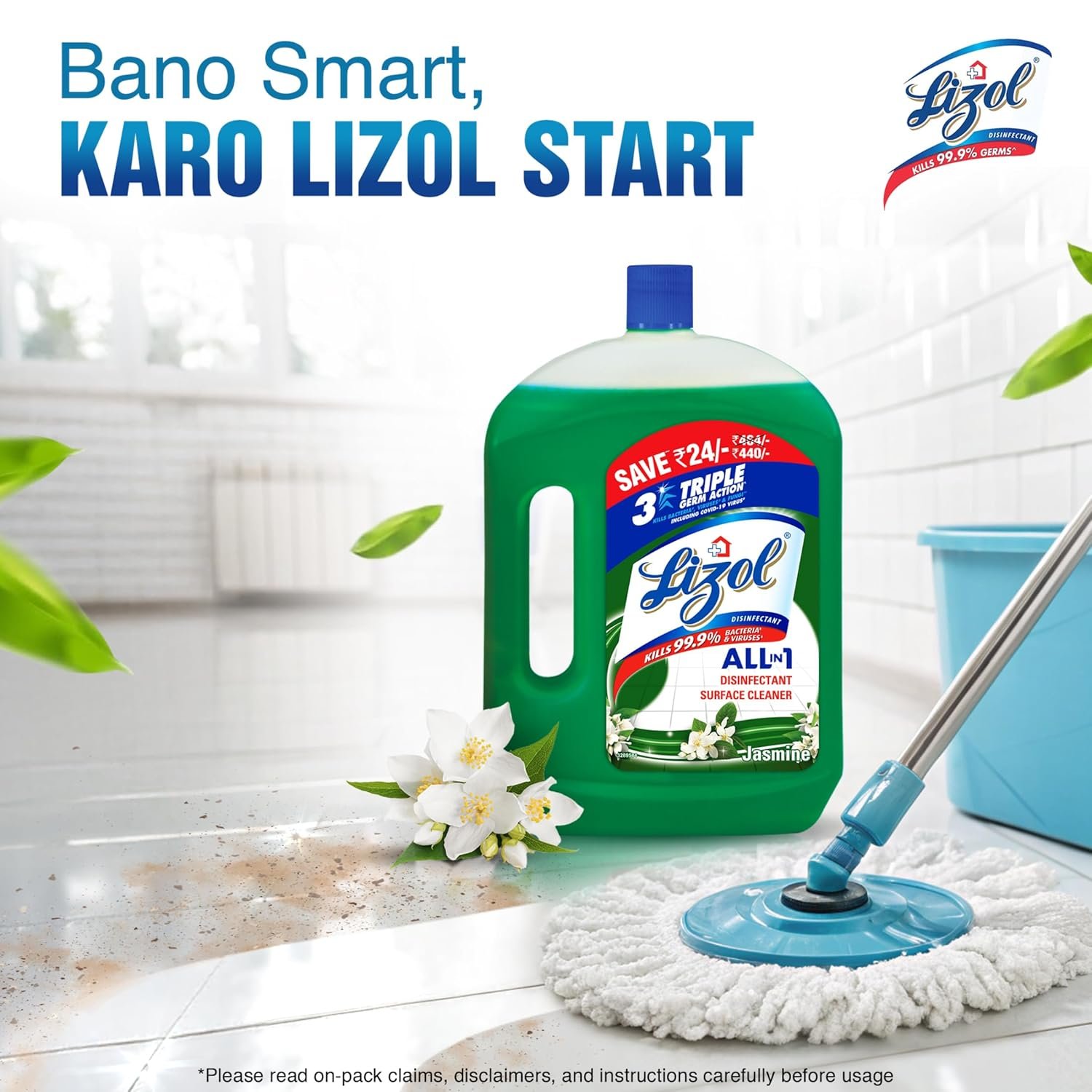 Lizol is India’s No.1 Household Cleaning Brand, highly recommended by the Indian Medical Association. Lizol guarantees to kill 99.99% of disease-causing bacteria as well as germs while leaving your room smelling fragrant with a wide variety of aromas. This cleaner removes 100 types of Stains & Germs and leaves a Pleasant Fragrance. Available Variants are Pine, Floral, Citrus, Jasmine, Lavender, Sandal and Neem in the sizes: 200 ml, 500 ml, 1L, 1.8L Refill, 2L and 5L. #Reckitt Benckiser calculation based on data reported by NielsenIQ through its Retail Index Service for the Cleaners-Floor Category, value for the 12-month ending June 30, 2022, for the India (U+R) market. (Copyright © 2022, NielsenIQ). ^Disclaimer: “When used as directed”