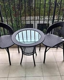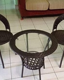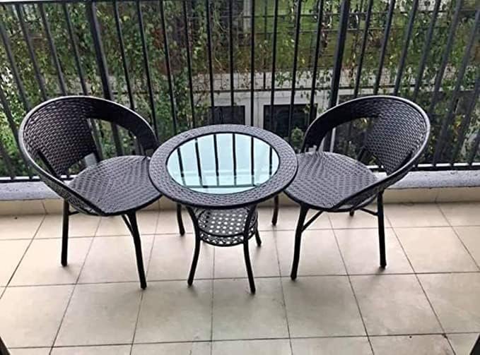 Garden Furniture Set || 2 Chairs with Cushions for Each || 1 Table with Glass Top || Table Top Size (24 Inch X 24 Inch)