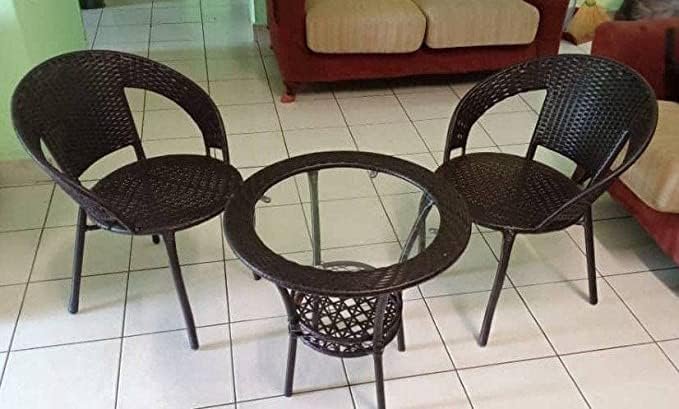 Lotey Outdoor D-12 Chairs Table Set 2+1 Wicker Patio Furniture Sets 2 Chair and 1 Table for Garden Balcony Bedroom Powder Coated Frame Uv Protected Wicker (Brown Colour)