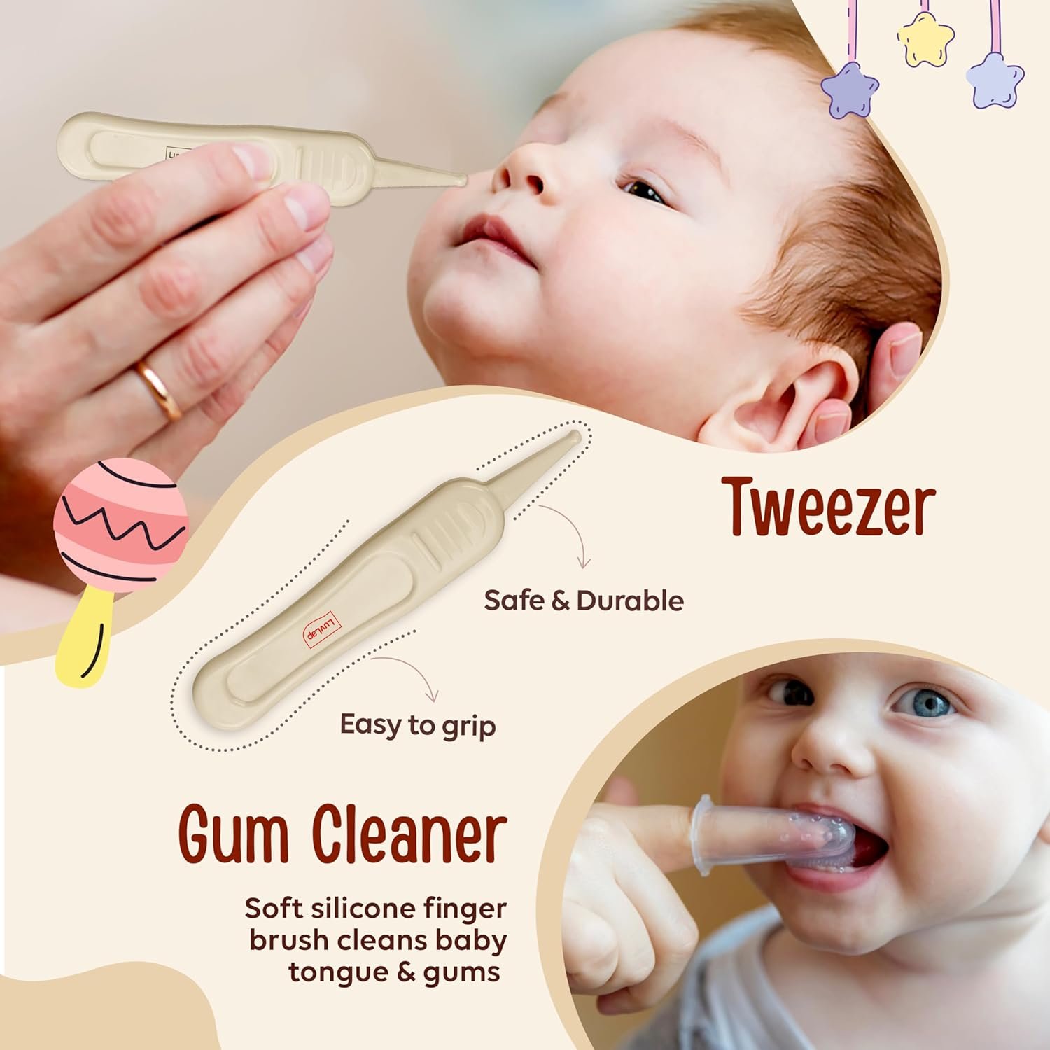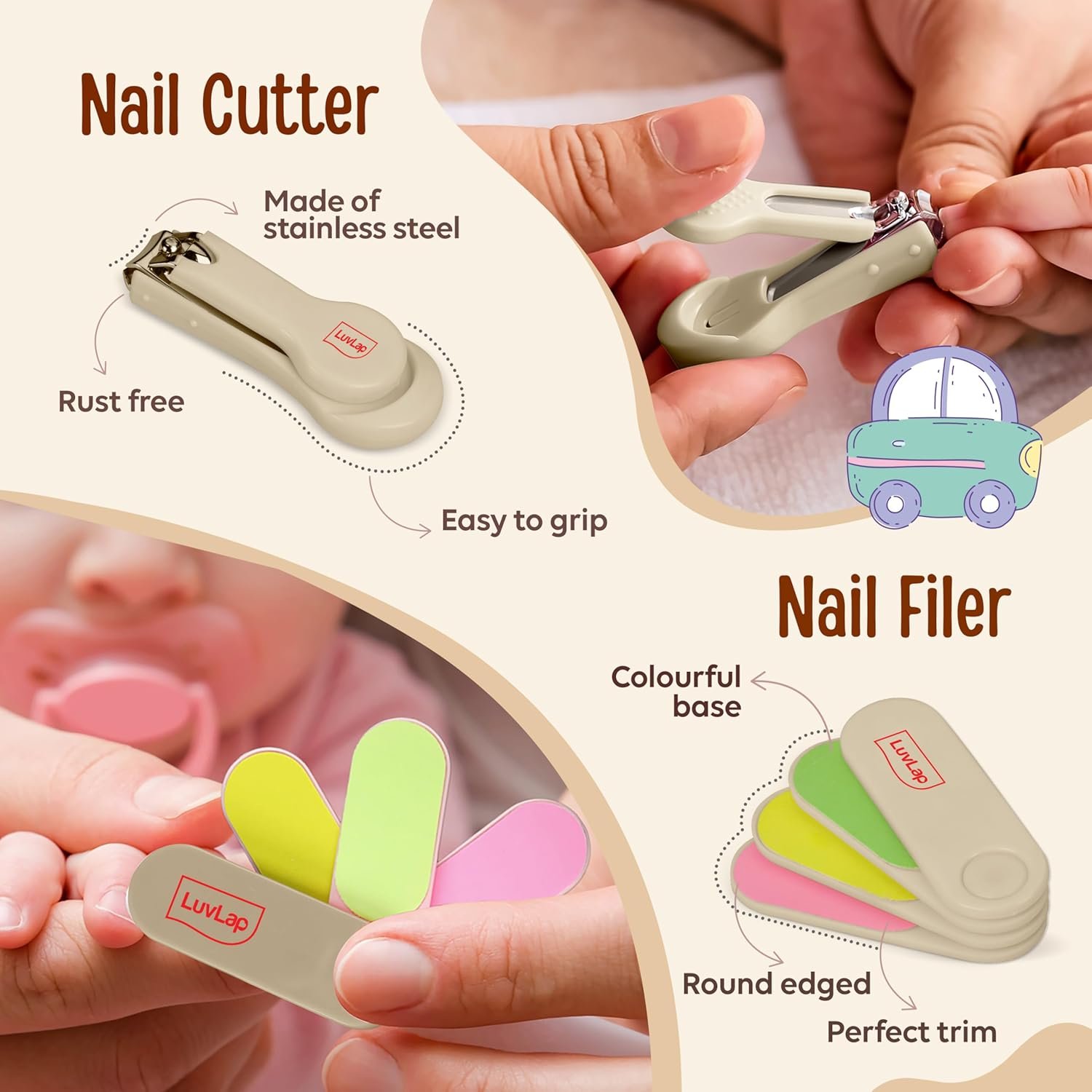 Nail Filer is helps smoothen the sharp nail ends and prevents baby from hurting themselves by scratching. Tweezer helps clean baby’s undernails, ear, nose or navel when needed