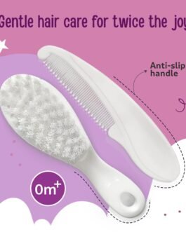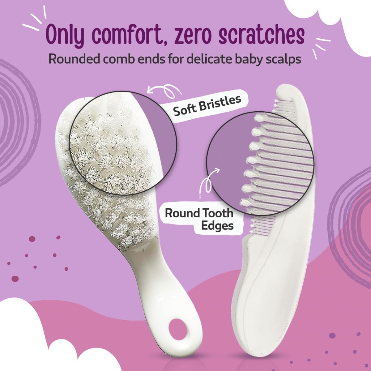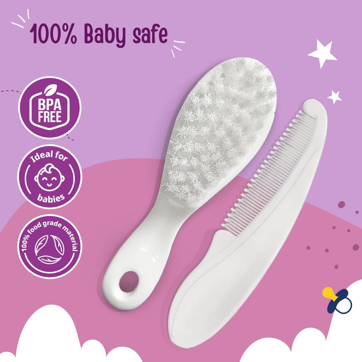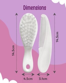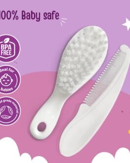 Set of Baby Hair Brush and Comb. Made of BPA material the hair brush has extremely soft bristles perfect for grooming new borns. Comb tooth has round edges to avoid scratching delicate baby scalp.