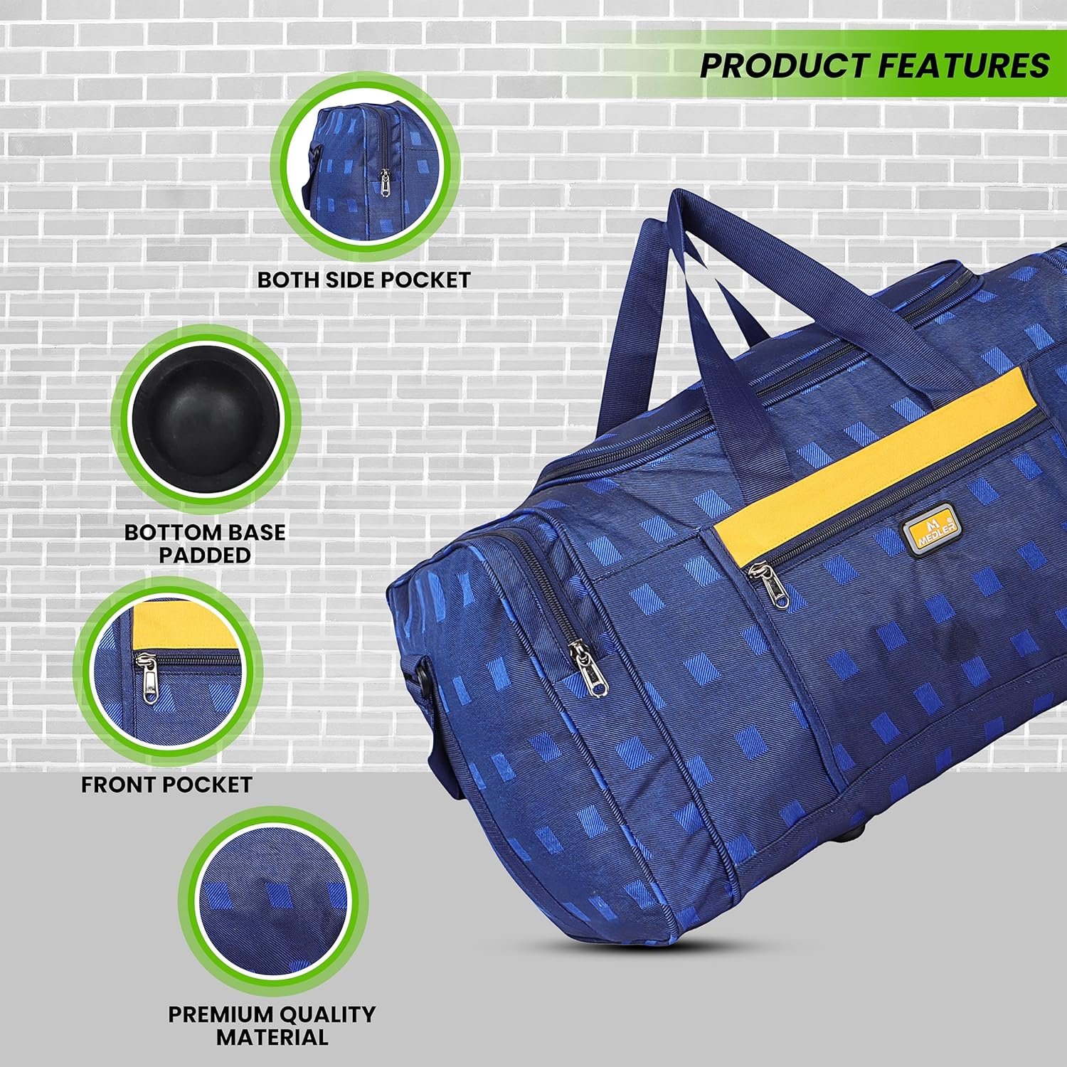 This Duffle Bag From M Medler is made of strong & lightweight Polyester Fabric. The bag has enough space to 2 -3 days trip and 7-8 sets of cloths. Compartments -1 main and 1 front & 2 Side pockets for easy storage & quick access, Along With The Zip Closure And Expandable Shoulder Strap.