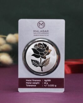 Malabar Gold & Diamonds 999 Purity Silver Coin 20 Grams|Rose Plain |Silver Coin cum Bar for Birthday, Anniversary and Diwali Gift