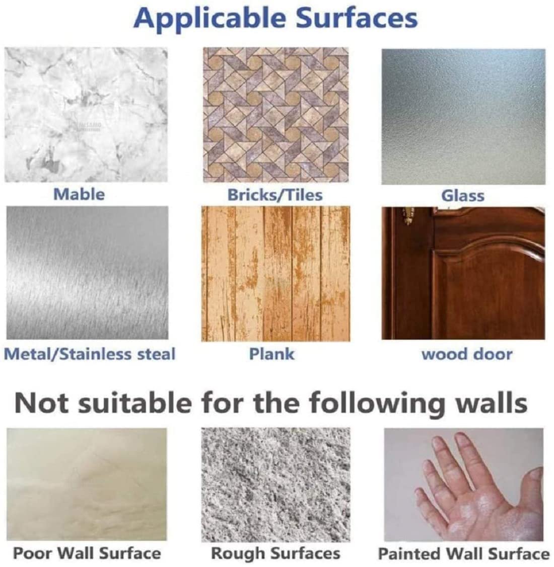 Maximun Weight: The ultra-strong adhesive has Max load up to 10 Kilograms