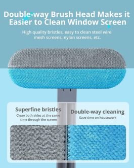 The window screen cleaning brush’s bristles made of neutral fiber material are soft, dense, Wet and dry dual purpose.It can be used dry for light dusting and maintenance cleaning, or you can get it wet and add some cleaning agents to increase your power.When wet with water, its cleaning ability will be stronger and faster, the longer fibers will even dig down to clean inside the holes.